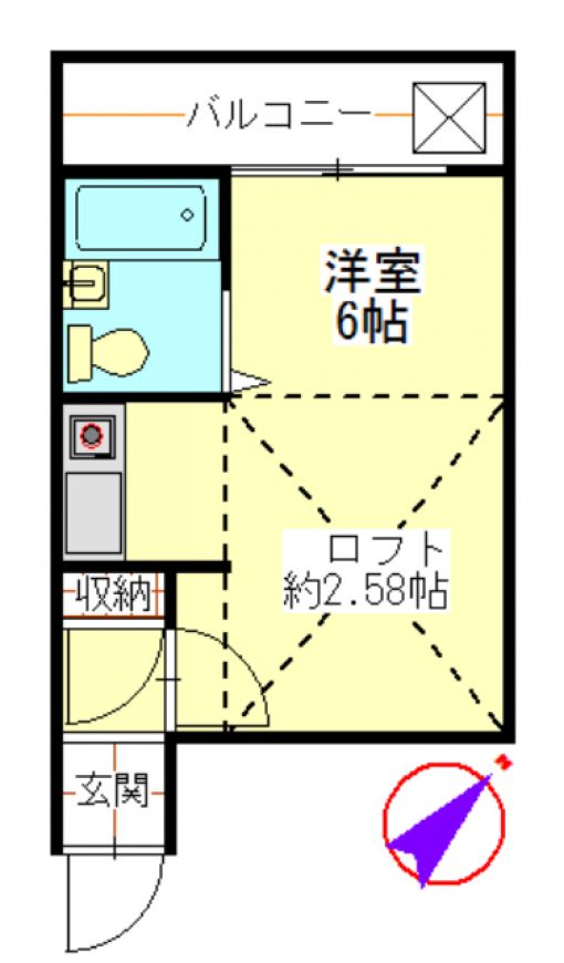 | 間取内訳/間取備考 | 洋6.0帖/専有面積にロフト4.2㎡含む |